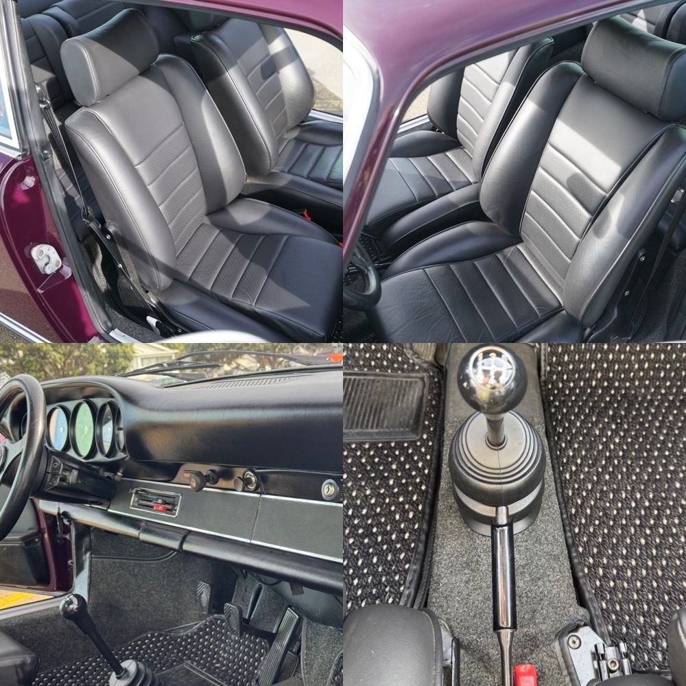 - The interior was fully renewed using GTS Classics seats trimmed in black leather, RS Perlon carpets, a bone headliner and a period MOMO Jackie Stewart wheel